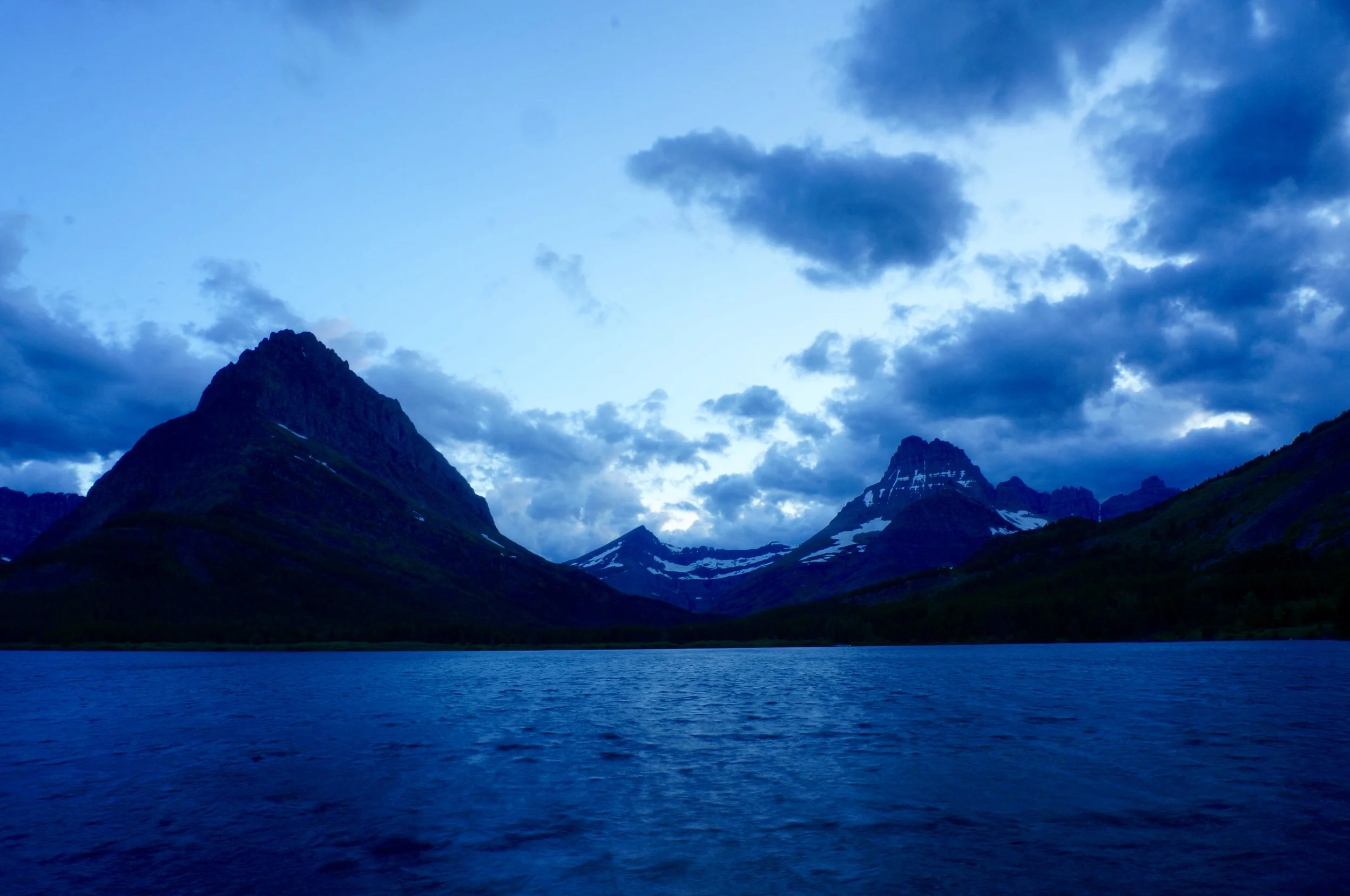 We return to our campsite in late afternoon, exhausted. We make an early dinner and decide to head over to Many Glacier hotel to catch the sunset. We arrive and find a harsh wind coming off the water. Clouds have settled over the peaks in the distance. We enjoy a Going to the Sun IPA as we look out at the sweeping scenery.